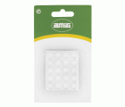 Medidas: Ø 8 x 2,5 mm. Paquete de 40 uds. Color: Transparente. Almohadillas protectoras de diseño tipo lágrima muy fáciles de colocar. Limpie y seque las superficies adecuadamente antes de su colocación. No quedarán rastros al retirarlas.