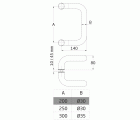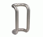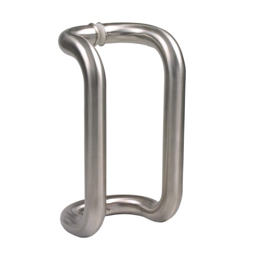 Tirador manillón doble de acero inoxidable 18/8. Recomendado para puertas de cristal. Asa de forma tubular curvada hacia los extremos con acabado satinado. Para espesor de puerta de 10 a 45 mm. Incluye arandelas de plástico y accesorios de fijación.