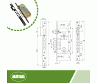 Cerradura de embutir para puertas de madera con bulones de cierre. Canto cuadrado. Frente y soporte. Picaporte reversible. Caja cerrada y piezas internas de acero bicromatado. Distancia entre nueca de manilla y alojamiento de cilindro Europerfil: 85 mm. Nueca para manilla de 8 mm. Desplazamiento: 20 mm (2 vueltas). Cilindro de seguridad modelo 9850 de 60 (30-30) mm. Escudo de seguridad modelo 31 sin bocallave. Homologada con marcado CE según norma EN 12209:2004.