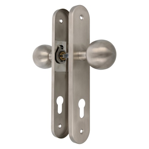 Pomo giratorio de acero inoxidable 18/8 para puerta. Incluye tornillería y bocallave.