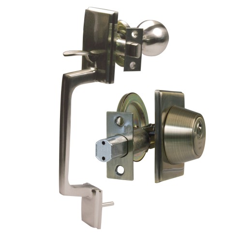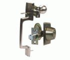 Cerrojo de roseta con llave a ambos lados. Manillón de latón con picaporte. Pasador de seguridad antisierra con avance 25 mm. Roseta de latón de Ø 65 mm. Entrada del cerrojo y del picaporte: 60 y 70 mm. Máximo espesor de puerta: 45 mm. Llave en bruto modelo 5100.