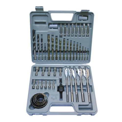 Maletín surtido de brocas con 48 piezas variadas. Brocas de HSS para metal. Brocas para madera de 3 puntas. Brocas pared estándar.