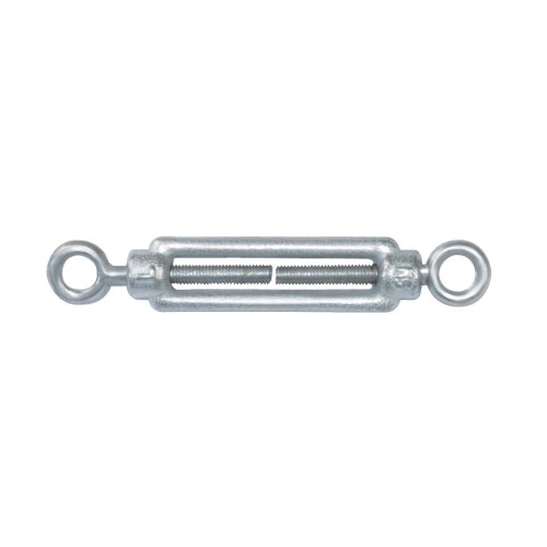 Anilla forjada a ambos extremos. Para amarrar en ellos cables de acero o ganchos. Facilita la fijación y el ajuste de cables en paredes, techos u otras estructuras.