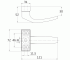 Juego de manillas de roseta en aluminio. Cuadradillo de 8 mm. Medida entre tornillos: 46 mm.