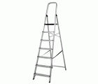 Escalera fabricada en aluminio de alta calidad con remaches de acero macizos y patas antideslizantes. Peldaños de 8 cm de ancho. Carga máxima: 150 kg.