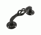 MANILLÓN DECORATIVO TIPO FORJA Y DETALLES ELEGANTES: Diseñado en zamak con placa de acero para puertas de paso o entrada, este manillón Modelo 103 de 140 mm no solo es robusto gracias a su fabricación en materiales de alta resistencia como el zamak y el acero, sino que también ofrece un acabado en negro que combina estética rústica con funcionalidad moderna. Ideal para integrarse en cualquier estilo de puerta, desde modernas hasta clásicas. Con roseta de acero Ø 52 mm.