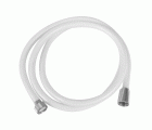 Flexo de ducha universal en PVC reforzado blanco con tuercas e inserciones en latón cromado. Posee una alta elasticidad y resistencia a altas temperaturas.