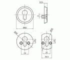 Escudo de zamak para cilindros Europerfil. Incluye tornillos, soporte y bocallave interior. Para puertas de espesor entre 35 y 40 mm. Para cerraduras AMIG o similares.