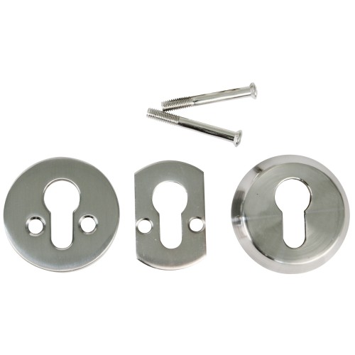 Escudo de zamak para cilindros Europerfil. Incluye tornillos, soporte y bocallave interior. Para puertas de espesor entre 35 y 40 mm. Para cerraduras AMIG o similares.