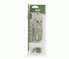 Cerradura de embutir para puertas de madera con bulones de cierre. Canto cuadrado. Frente y soporte. Picaporte reversible de acero cromado. Distancia entre nueca de manilla y alojamiento de cilindro Europerfil: 85 mm. Nueca para manilla de 8 mm. Sin cilindro y sin escudo. Caja cerrada y mecanismo interior de acero bicromatado. 4 bulones de acero cromado, desplazamiento: 20 mm (2 vueltas).