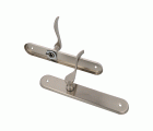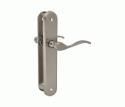 Juego de manillas con tirador de zamak y placa de acero. Cuadradillo de 8 mm. Incluye accesorios de fijación.