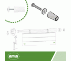 Se coloca en la parte final de la persiana utilizando dos unidades a ambos lados y sujetándolos mediante el tornillo central. Quedarán orientados hacia la cara exterior de la persiana. Harán de límite para evitar que se salga de las guías al enrrollarla o subirla.