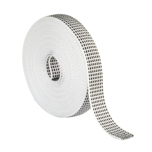 Cinta para carretes de persiana con un toque suave y a la vez rígido para facilitar su uso. Resistente a los rayos UV. Excelente resistencia a la abrasión.