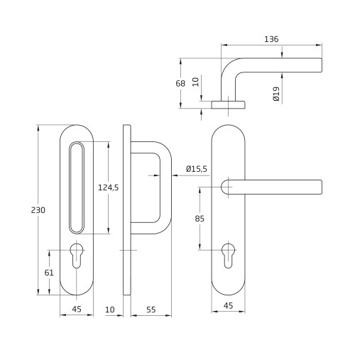 | 20401 | AMIG 20401 | Set manillón + manilla 10PX + 4PXB85 | 230 x 45 mm | Acero inoxidable 18/8 | Mate - Izquierda | 230 x 45 mm | 8413023204010 |