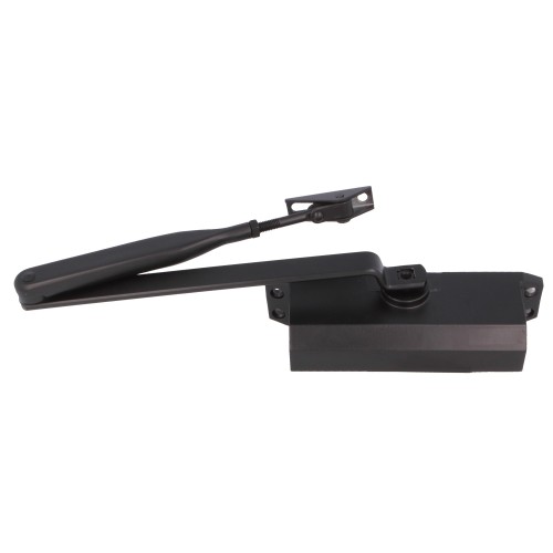 Cierrapuertas fabricado en aluminio y palanca regulable de acero. Mecanismo interior compuesto de un muelle helicoidal con aceite hidráulico y válvula de graduación. Apertura máxima de trabajo 180º. Palanca regulable. Certificado según normativa EN 1154.