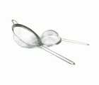 Colador de media bola de acero inoxidable 18/8. Con aro exterior reforzado, doble varilla y tamiz de alta densidad. Con orificio para colgar.