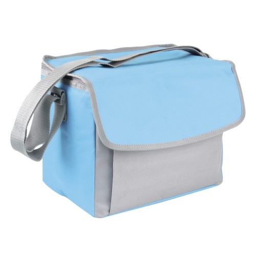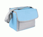 Bolsa portaalimentos flexible, con aislante térmico, asa y bandolera. Diseño en azul y gris con asa, cierre de cremallera y bolsillo frontal externo con cremallera para guardar sus pertenencias en cualquier lugar. Muy resistente y fácil de limpiar.