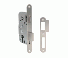 Cerradura de embutir para puertas de madera con paletón de cierre. Canto redondo. Frente y soporte en acero. Picaporte reversible. Distancia ent re nueca de manilla y alojamiento de cilindro europerfil: 47 mm. Entrada : 40 mm. Nueca para manilla de 8 mm. Sin cilindro ni bocallave.