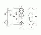 Para puertas metálicas. El escudo tiene unas medidas de 70 x 25 mm. El zamak es un material duro, con buena resistencia gracias a su composición con varios metales.
