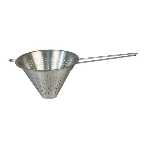Colador chino de acero inoxidable 18/8. Con doble varilla. Con orificio para colgar.