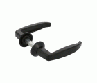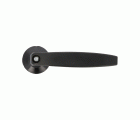Juego de manillas de aluminio sin placa con escudo circular, de diseño sencillo y moderno acabado en color negro.