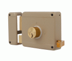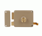 Cerradura de sobreponer de cilindro suelto para puertas de madera. Cilindro de latón macizo de 6 pines. Pestillo, palanca y tirador de latón macizo. Desplazamiento de palanca 20 mm (2 vueltas de llave). 3 llaves de serreta de latón niqueladas. Entrada: 50 mm. Adaptable a puertas de 35 a 80 mm.