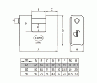 Candado rectangular en latón monobloque. Barra tratada de acero. Coraza de acero templado. Placa antitaladro de acero templado. Incluye dos llaves. Cierre de bola.
