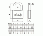 Candado fabricado en latón macizo con arco tratado de acero para una mayor resistencia a la cizalla y al apalancamiento. Componentes interiores resistentes a la corrosión. Combinaciones con bombillos iguales. Incluye 2 llaves.