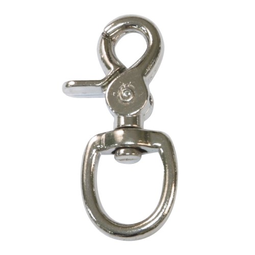 Mosquetón con cierre tipo tijera. Uso doméstico para enganchar cuerdas, cables o correas.