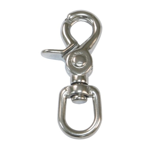 Mosquetón con cierre tipo tijera. Uso doméstico para enganchar cuerdas, cables o correas.