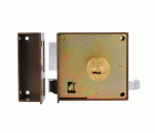 Cerradura de sobreponer para puertas de madera. Mecanismo interno de acero niquelado y bicromatado. Palanca de cierre cromada, desplazamiento 22 mm (a 2 vueltas). Picaporte de latón cromado, con tirador. Cilindro redondo de seguridad exterior Ø25X50 mm e interior Ø25X34 mm. 5 llaves de puntos de latón niquelado. Llaves en bruto modelo 5000.