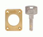 Cerradura de sobreponer para puertas de madera. Mecanismo interno de acero niquelado y bicromatado. Palanca de cierre cromada, desplazamiento 22 mm (a 2 vueltas). Picaporte de latón cromado, con tirador. Cilindro redondo de seguridad exterior Ø25X50 mm e interior Ø25X34 mm. 5 llaves de puntos de latón niquelado. Llaves en bruto modelo 5000.
