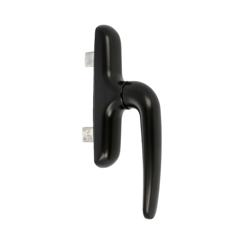 Manilla con sistemas de apertura practicable para puertas y ventanas de aluminio y PVC. Diseñada para perfiles de cámara europea con apertura interior de dos palas. Cuerpo de la manilla fabricado en aluminio lacado. Engranaje y resortes de acero zincado. Ligereza y alta durabilidad frente a esfuerzos mecánicos repetitivos. Permite modificar orientación de apertura de una forma sencilla. Por defecto de derechas.