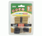 Cilindro de alta seguridad en latón con 6 pines y leva de 15 mm. Doble embrague. 1 pin antitaladro en el cuerpo y 2 en el rotor. Barra antiextracción y antirrotura de acero inoxidable. Protegido contra ganzúa. Sistema antibumping. Muelles de acero inoxidable. Cilindro codificado con tarjeta de propiedad para la copia de llaves. Incluye 5 llaves con cabeza plástica. Uso en cerraduras para carpintería de madera.