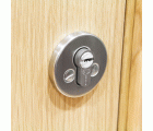 Cilindro de alta seguridad en latón con 6 pines y leva de 15 mm. Doble embrague. 1 pin antitaladro en el cuerpo y 2 en el rotor. Barra antiextracción y antirrotura de acero inoxidable. Protegido contra ganzúa. Sistema antibumping. Muelles de acero inoxidable. Cilindro codificado con tarjeta de propiedad para la copia de llaves. Incluye 5 llaves con cabeza plástica. Uso en cerraduras para carpintería de madera.