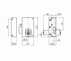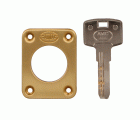 Cerradura de sobreponer para puertas de madera. Mecanismo interno de acero niquelado y bicromatado. Palanca de cierre cromada, desplazamiento 18 mm (a 1 vuelta). Cilindro redondo de seguridad exterior Ø25X50 mm e interior Ø25X34 mm. 5 llaves de puntos de latón niquelado. Llaves en bruto modelo 5000, código 6380.