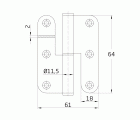 Pernio de acero inoxidable. Canto redondo, con remate plano.