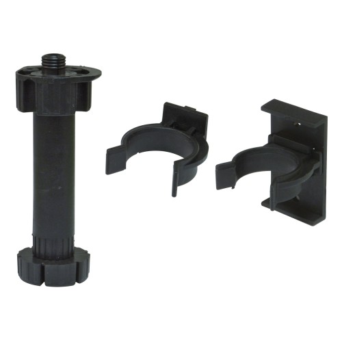 - KIT DE 4 PATAS Y 8 SOPORTES PARA COCINA: Set especial para muebles de cocina, compuesto por 4 patas de plástico regulables con espiga y 8 soportes (4 para madera y 4 para aluminio) para la fijación de los zócalos a la encimera.