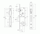 Cerradura de embutir para perfiles europeos de carpintería metálica. Picaporte reversible y palanca de cierre deslizante. Alojamiento para cilindro Europerfil con leva de 15 mm. Distancia entre nueca de manilla y alojamiento de cilindro: 85 mm. Frente y soporte de acero. Nueca para manilla de 8 mm.