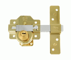 - Cerrojo de sobreponer con cilindro redondo de alta seguridad exterior e interior. Medidas: 105 x 170 mm. Longitud del cilindro: 50 mm. Fabricado en Acero. Color Dorado.