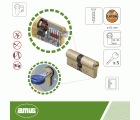 Medidas cilindro: 62 mm (31 - 31 mm desde el centro de la leva). Diámetro cilindro: 62 mm. Con 5 llaves de punto (modelo 5000 AMIG) y tornillería. Material: cilindro de latón y cerrojo de acero, empleados por su vida útil y su alta resistencia.