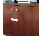 Cierre de seguridad frontal que impide la apertura de armarios y cajones. Adhesivo.