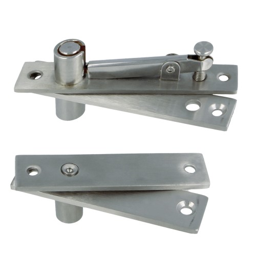 Juego de bisagras para puerta pivotante. En acero inoxidable 18/8. Para puertas de madera.