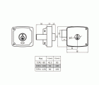 Cerradura de sobreponer para puertas de madera. Cilindro redondo de latón Ø25x50 mm de 5 pines. Con palanca de cierre. Desplazamiento de palanca 20 mm (2 vueltas de llave). 3 llaves de serreta. Llave en bruto modelo 6410.