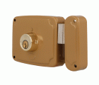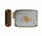 Cerradura de sobreponer para puertas de madera. Cilindro redondo de latón Ø25x50 mm de 5 pines. Con palanca de cierre. Desplazamiento de palanca 20 mm (2 vueltas de llave). 3 llaves de serreta. Llave en bruto modelo 6410.