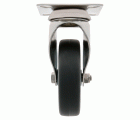 Rueda con banda de caucho termoplástico y núcleo de polipropileno. Con pletina metálica de acero inoxidable 18/8. Uso semi-industrial.