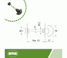 Muletilla de zamak. Cuadradillo de 6 mm para condenas en puertas de paso. Espesor máximo de puerta: 55 mm. Troquelado de placa de Ø14 mm.