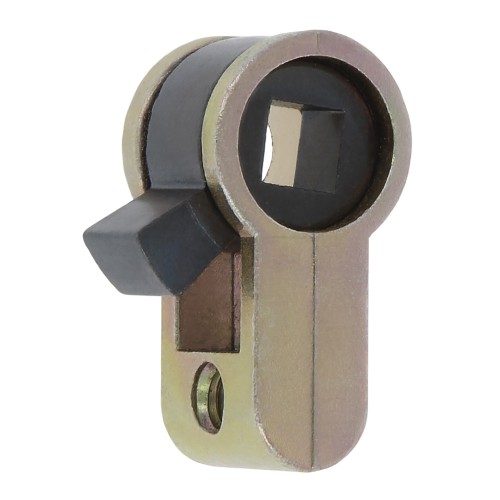 Adaptador para la colocación de condenas en cerraduras con orificio para cilindros. Orificio para cuadradillo de 6 mm. Incluye tornillos latonado y zincado de 60 mm.