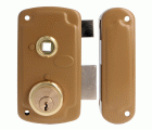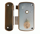 Cerradura de sobreponer para puertas de madera. Cilindro redondo de 50 mm. 3 llaves de serreta. Con palanca de cierre y lengüeta reversible. Nueca de manilla de 8 mm. Llaves en bruto modelo 6410.