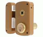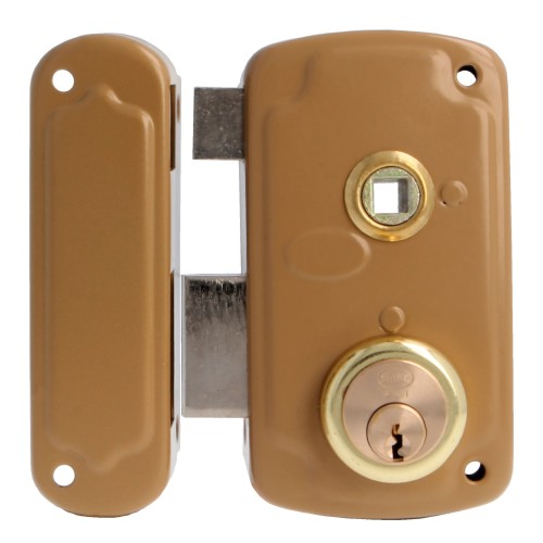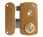 Cerradura de sobreponer para puertas de madera. Cilindro redondo de 50 mm. 3 llaves de serreta. Con palanca de cierre y lengüeta reversible. Nueca de manilla de 8 mm. Llaves en bruto modelo 6410.
